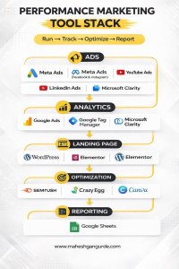 Performance marketing tools are digital tools used to run ads, track results, and measure marketing performance. These tools help marketers understand how many people click, visit, or buy after seeing an advertisement.