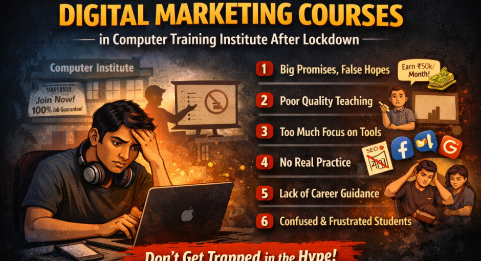 Many computer institutes focus mainly on selling the course instead of properly guiding the student. During counseling, they often promise quick success, high salaries, and easy learning in Digital Marketing.